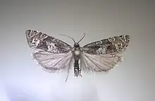 The wingspan is 18–20 mm. Adults are on wing from June to July.