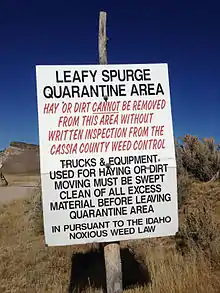 - ↑ "Pest Management- Invasive Plant Control Leafy spurge (Euphorbia esula)" (PDF). National Resources Conservation Service. January 2007. Retrieved 2017-10-23.