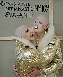 Eva & Adele are an artistic couple who claim to have "landed their time machines" in Berlin after the Wall fell in 1989, claiming to be "hermaphrodite twins from the future".[1] Both refuse to tell their real name or age. They are famous mainly for sharing an invented gender, which is neither male nor female.[2]