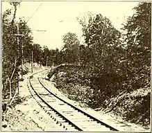 The track is laid with 70-lb/yard (35 kg/m) rails on oak ties, obtained largely from the neighboring country. The entire railroad was bonded with brazed bonds, the work being done by the Electric Railway Improvement Company, of Cleveland, Ohio.