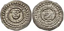 Each year, bracteate pfennigs had to be exchanged for a fee, usually twelve old ones for nine or ten new ones. The old ones were declared invalid, recalled (Verrufung) and replaced by coins with new images.[1][2] The surplus went to cover minting costs and make a profit. An example of how the exchange was enforced is provided by Freiberg's municipal law: