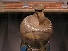 "Lucius Fernius has made for Amaka (this jar)/Lucius, in his birthplace called Metcius, has made this jar for her in his business/(I,) Lucius, devote (this jar) to the good god of Fere(s)ne (?), my birthplace" [2]