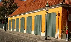 Faroese Warehouse was originally located on the other side of Frederiksholm Canal. It was used for trade with the Faroe Islands. However, Christian IV's Brewhouse on Slotsholmen was hit by fire in 1767 and due to its proximity to Copenhagen Castle, the royal residence, fear of future fires prompted the decision to move the royal brewery to the far side of the canal. Faroese Warehouse was then moved to its current location next to the old brewhouse which was rebuilt and put to other use. The new building was completed in 1772.[1]