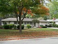 F.W. Lewis was an accountant at the Dow Chemical Company. In 1933, he hired architect Alden B. Dow to design this home. It was Dow's first foray into a low-priced home design, something that interested the architect throughout his life. Clapboard siding was added to the house some time in the 1960s. A single car garage was added about the same time.[2]