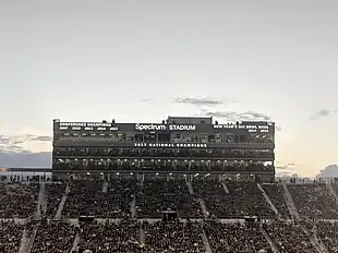 At their spring game in 2018, UCF unveiled signage on Roth Tower to commemorate the football program's conference championships, New Year's Six/BCS bowl wins, and their National Championship for the 2017 season.[58][lower-alpha 1]