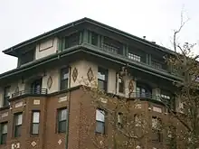 The Fairmount Apartments, also known as the Grand Lady of Jersey City, are located in Jersey City, Hudson County, New Jersey, United States. The Apartments were added to the National Register of Historic Places on March 3, 1995. The Apartments are an example of an early twentieth century Arts and Crafts style apartments.[3] The building consists of two L-shaped 4+1⁄2-story brick-and-concrete structures connected by a 1-story structure.