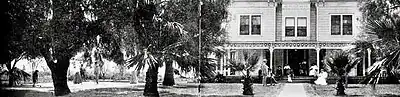 According to the Santa Ana Public Library history department, the hotel "was known for its mud baths"[4] and advertised croquet grounds, "spacious verandas" and "Recreation-Rest".[5] In 1889, a week at the Fairview Hotel cost about $10.[6] The exact location of the original hotel is unclear; it was eventually moved four blocks to present-day Merrimac Way and Harbor Boulevard, near the southwest corner of Orange Coast College in Costa Mesa.[6]