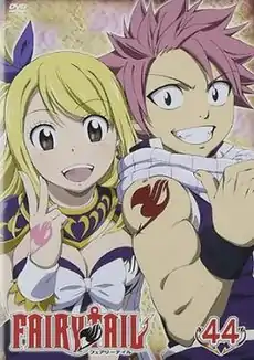 ![]() Cover of the forty-fourth and last DVD volume of the first series of Fairy Tail released by Pony Canyon in Japan on September 4, 2013, featuring Lucy Heartfilia and Natsu Dragneel. | |
