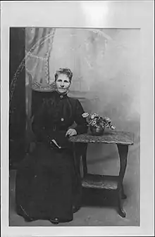 Osborne was widowed on 9 January 1920. Towards end of her life she was crippled with arthritis, and moved to the mainland to live with her daughters Constance and Winifred only reluctantly, when she was aged 77. Osborne died in Auckland on 12 March 1934 and is buried on Great Barrier Island.[1] Osborne had 13 children. Her daughter Lilian Gibbard became a noted painter of wildflowers.[2] Son Charles Osborne was a naturalist and conchologist, and kept a shell museum.[2] Son Cedric Osborne was known for his skill with inlaid wood, and created two panels depicting native flowers, which were presented to the Princess Elizabeth and the Duke of Edinburgh as a wedding present from the people of New Zealand.[2]