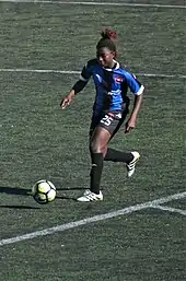 Fanta Zara Kamate playing for Fatih Vatan Spor in the 2018-19 Turkish Women's First Football League.