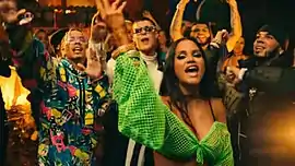 An accompanying music video was released simultaneously with the song. The visual was produced by Mastermind Company, directed by Gustavo "Gus" Camacho, and filmed in Miami. It depicts Alejandro, Anuel AA, Natasha, Farruko, and Lunay singing and "having a great time together at a beach party". Billboard's Jessica Roiz described the video as "festive" and "tropical", while Bolivar Feijoo of Wow La Revista called it "happy", "tropical" and "colorful".[10][53]