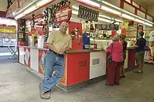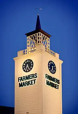 The Original Farmers Market is an area of food stalls, sit-down eateries, prepared food vendors, and produce markets in Los Angeles, California, at the corner of Fairfax Avenue and 3rd Street. First opened in July 1934, it is also a historic Los Angeles landmark and tourist attraction.