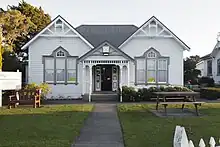 The Anzac Hall was built in 1916 to give ‘A place of resort, recreation and amusement for all those who are now or have been or may be during the term of the war employed in the military or naval service of the Crown’.[13] A large, beautiful wooden hall with two smaller rooms, it was restored for its centennial and is a Category 1 historic place.[14] It now serves as a town hall and community hub, used for concerts, events and meetings.