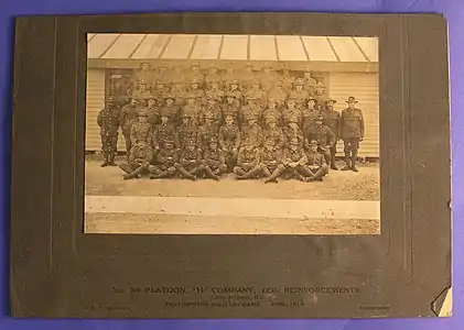 Featherston Military Camp, on a "windswept grassy plain" 3 kilometres north of Featherston, New Zealand, was built after the announcement of National Registration of all military-aged men to supplement Trentham Military Camp on the other side of the Rimutaka hill. The National Registration actually took place in October and November 1915, but the bill empowering conscription by the government did not pass until 1 August 1916.[1]