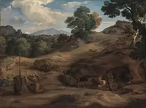 Olivier visited Salzburg in 1815 and 1817, making drawings which, in 1822, he used as the basis of a series of lithographs in the which Austrian landscapes form the background to Christian iconography.[2] In 1817 he became a member of the "Lukasband" (usually translated as the "Brotherhood of Saint Luke"), a fraternity of artists, often known as the "Nazarenes", which had been founded by Friedrich Overbeck and Franz Pforr eight years earlier.[4][5] Olivier was the only member of the group never to have visited Italy.[2]
