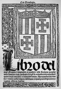 Oviedo's first literary work was a chivalric romance entitled, Libro del muy esforzado e invencible caballero Don Claribalte (Book of the very striving and invincible knight Don Claribalte). It was published in 1519 in Valencia by Juan Viñao, one of the prominent printers of that time. In the foreword, dedicated to Ferdinand of Aragón, Duke of Calabria (not to be confused with the King Ferdinand II of Aragon), Oviedo relates that the work had been conceived and written while he was in Santo Domingo. Therefore, it seems that this was the first literary work created in the New World.[3]
