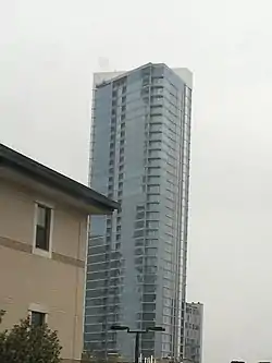 Fifth & West Residences is a 39-story residential skyscraper located at 501 West Ave. in Downtown Austin,[1] Texas. The tower is the eleventh tallest in Austin at 459 feet (140 m). Fifth & West is the fourth tallest all-residential tower in Austin, behind The Independent, The Austonian and 360 Condominiums. The building is located along a Capitol View Corridor,[2] creating a unique triangular tower atop a square podium base. The tower is located in the Shoal Creek floodplain.
