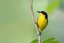It was variably considered a subspecies of a widespread golden whistler (P. pectoralis).[2][3] Three of the subspecies (P. v. kandavensis, lauana, and vitiensis) of the former white-throated whistler (P. v. kandavensis, lauana, and vitiensis) were lumped with the Fiji whistler in 2014 by the IOC.[4] The Temotu whistler was formerly considered conspecific with the Fiji whistler.