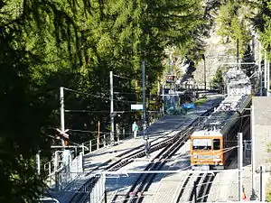 Findelbach is a railway station on the Gornergrat railway, which links the resort of Zermatt with the summit of the Gornergrat. The station is situated in the municipality of Zermatt, in the Swiss canton of Valais, at an altitude of 1,770 m (5,810 ft) above mean sea level.[1][2][3]
