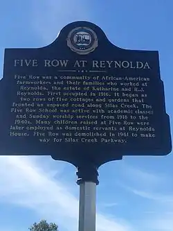 - ↑ "Five Row: The Lost Village of Reynolda". 88.5 WFDD. Retrieved 20 September 2016.