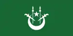 Flag of the MuftiA green flag with a white crescent and star and two white kris and spears charged on the fly.
