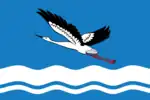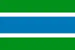 The flag of Khabarovsk Krai, in the Russian Federation, is a horizontal white and light blue bicolour charged with a green triangle at the hoist side in a similar fashion to the flag of the Czech Republic, albeit with different colors. It was adopted on 14 July 1994. The proportions are 2:3.[1][2]
