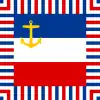 1993–2006Small  vexillological symbol or pictogram in black and white showing the different uses of the flag Flag of a vice admiral1:1 proportioned red field with blue and red stripes at the border and a golden anchor in the upper left corner