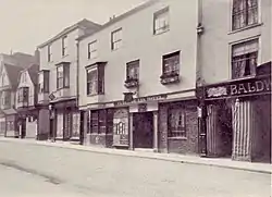 The hotel is mentioned as early as 1376. In the back of the building was a livery stable and the Fleur de Lis tap, which can be dated to 1372.[4] An engraving from 1808 on a post card shows the 13th century windows in the courtyard of the hotel with carved corbels. The same corbels can be seen in a 1895 photograph that show the back of the building next to The Cherry Tree Freehouse pub on 10 White Horse Lane.[1][4]