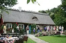 In 1927 Alexander and Anna Lundgren bought a timber framed fisher's cot built 1732 in Skäret. They were farmers from Allerum and renovated the cottage to turn it into a holiday home for the family. During the difficult 1930s, in order to keep the summer cottage, the oldest sister Greta opened the café. She got help from Rut, who was a baker's apprentice, and the younger sisters.[3] The business expanded quickly and in 1939 they built a separate bakery.[4] Tragically Ebba succumbed to tuberculosis and died in 1939.[5]