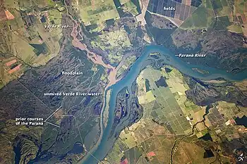 Floodplains support diverse and productive ecosystems.[16][17] They are characterized by considerable variability in space and time, which in turn produces some of the most species-rich of ecosystems.[18] From the ecological perspective, the most distinctive aspect of floodplains is the flood pulse associated with annual floods, and so the floodplain ecosystem is defined as the part of the river valley that is regularly flooded and dried.[19]