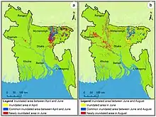 - ↑ Chowdhury, Sifatul Quader; Hossain, Md Sazzad (2012). "Flood". In Islam, Sirajul; Jamal, Ahmed A. (eds.). Banglapedia: National Encyclopedia of Bangladesh (Second ed.). Asiatic Society of Bangladesh.