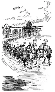 According to Salten's biographer Beverley Driver Eddy, "The portrayals of royalty are as compelling as those of the animals."[7] As a journalist, Salten was famous for his sketches, portrayals and obituaries of celebrities, which were also collected in books: Buch der Könige (1905) and Das österreichische Antlitz (1909).[8] In Florian, the text sometimes turns into "a history lecture"[9] about the Heir Apparent, Franz Ferdinand, who receives special attention: he is shown coarse and impatient to ascend to the throne, and the antagonism between him and the emperor is illustrated in detail.[7] Also the visiting monarchs Edward VII of England and Nicholas II of Russia are depicted in a lively way.