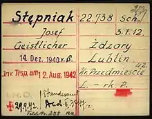 Registration card of Florian Stępniak as a prisoner at Dachau Nazi Concentration Camp