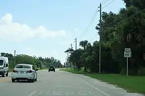 Starting its 8.4 miles (13.5 km) at CR 512 at Vero Lake Estates, the road begins as a north-south route for 1.2 miles (2 km) as 90th Avenue, then turns east to Wabasso as Wabasso Road. After 70th Avenue, it intersects with a major junction called County Road 615. 1 mile (1.6 km) east of this point is County Road 613, 0.5 miles (0.8 km) east of that point is County Road 605 in Wabasso. A block east of the road is US 1, ending CR 510. That section of Wabasso Road ends at 108th Avenue. For more information, see Wabasso Road West.