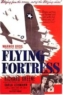 Flying Fortress is a 1942 British black-and-white war film drama from Warner Bros. Pictures, produced by A. H. Soloman, directed by Walter Forde,[2] that stars Richard Greene and co-stars Carla Lehmann, Betty Stockfeld, and Donald Stewart.[3]