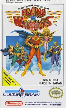 Flying Warriors is an action video game developed and published by Culture Brain for the NES in North America in February 1991. It is a mixture of two Family Computer video games in the Hiryū no Ken franchise: it is a heavily reworked version of Hiryu no Ken II: Dragon no Tsubasa, in which various ideas and elements from Hiryu no Ken III: 5 Nin no Ryuu Senshi have also been implemented.