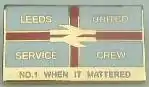 Leeds United Service Crew badge, featuring the British Rail symbol.