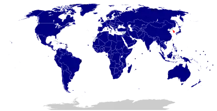 South Korea maintains diplomatic relations with 191 countries. The country has also been a member of the United Nations since 1991, when it became a member state at the same time as North Korea. South Korea has also hosted major international events such as the 1988 Summer Olympics and 2002 World Cup Football Tournament (2002 FIFA World Cup co-hosted with Japan) and the 2011 IAAF World Championships Daegu South Korea. Furthermore, South Korea had hosted the 2018 Winter Olympics which took place in Pyeongchang, South Korea from 9 to 25 February.