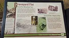 Little is left of Forest City today. The foundations of the smelter and of some houses are still visible.[1] The cemetery at Graveyard Flat was preserved for years, but over time people drove snowmobiles and all-terrain vehicles over it and even tore down the picket fence surrounding it. As of 2004, only a wooden sign remained.[8] On National Public Lands Day in September 2012, Forest Service employees and volunteers from local four-wheeling clubs gathered at Graveyard Flat, built a new sturdier fence around the graveyard, and replaced the old wooden sign with two newer interpretive signs depicting the history of the town and the cemetery.