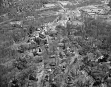 Forest Glen Park and the Forest Inn, at present day National Park Seminary, were developed by the Forest Glen Improvement Company in 1887.[8][9] Originally consisting of 166 acres (67 ha), Forest Glen Park was one of the earliest residential subdivisions in Montgomery County and was developed as a result of Washington, D.C.'s growing population.[8][10] The area was easily accessible to Washington D.C., as it was situated along the Baltimore and Ohio Railroad's Metropolitan Branch.[8][9][11] The Forest Glen Improvement Company developed Forest Glen Park as a residential suburb and resort for Washington D.C. residents seeking a more natural environment.[8][9] The company was recorded in corporate record books on July 15, 1887, and the plat for the Forest Glen Park subdivision was recorded on July 31, 1887.[8] The Forest Glen Improvement Company laid out the neighborhood's avenues to conform with the natural topography and ensured that the lot sizes were large, to allow for "handsome villa sites."[12] The company described the neighborhood as "Washington's most desirable suburb."[11] By April 1887, over two-thirds of the development had been sold.[13] The residential section of Forest Glen Park initially consisted of summer homes and cottages centered around the Forest Inn at the National Park Seminary.[8] It later grew to consist of Victorian-style and early 20th-century residences intermixed with homes built in the 1940s.[14]