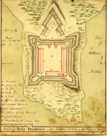 Fort Frederick (1758—1777, earlier Fort Menagoueche, superseded by Fort Howe in 1777) was a British fort at what is now Saint John, New Brunswick, Canada. It was built during the St. John River Campaign of the French and Indian War. It was one of three significant forts which the British built on the major rivers in the Northeast to cut off the natives' water way to the ocean to prevent attacks on the British settlers (see also Fort Halifax and Fort Pownall).[1]
