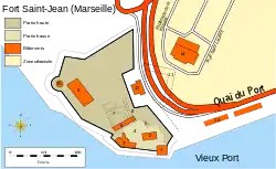 In 2013, the Fort Saint-Jean became part of the Museum of European and Mediterranean Civilisations (MuCEM). The major buildings comprising the complex include:
