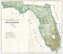 An 1853 plat map of Florida that includes Fort Thompson west of Lake Okeechobee
