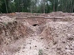 The Fort de St-Héribert or the Fort de Wépion is one of nine forts built as part of the Fortifications of Namur in the late 19th century in Belgium. It was built between 1888 and 1892 according to the plans of General Henri Alexis Brialmont. Contrasting with the French forts built in the same era by Raymond Adolphe Séré de Rivières, the fort was built exclusively of unreinforced concrete, a new material, rather than masonry. In 1914 the fort was heavily bombarded by German artillery in the Battle of Namur. Maizeret was upgraded in the 1930s to become part of the fortified position of Namur in an attempt to forestall or slow an attack from Germany. It saw action in 1940 during the Battle of Belgium, and was captured by German forces. The fort now belongs to the private Fondation Emile Legros. The foundation has already unearthed the main entrance and other areas.