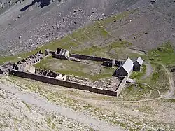 The Fort de Viraysse is a fortification complex in the Cottian Alps overlooking the Ubaye Valley. It was built between 1885 and 1888 to defend France against invasion from Italy. The position was one of the highest military posts in France at 2,772 metres (9,094 ft), and the only one in the Alps with a clear view of Italy. It was constructed as part of the Séré de Rivières system of fortifications, as a small post with an enclosing wall, and formed part of the elaborate fortifications centering on the Fort de Tournoux. The Col de Mallemort is directly adjacent to the fort.[1][2]