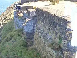 Erected on the eastern flank of the Monte da Guia, in a dominant position over the Bay of Horta, and integrated into the medieval defensive system against pirates in the channel.[1] It was built from masonry stone and volcanic rock: its most obvious extent is visible in the dozen canon battlements that face the island of Pico.