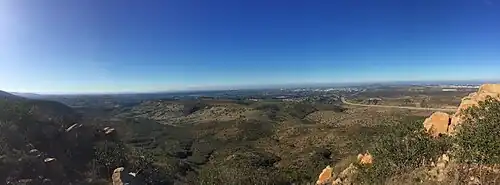 Fortuna Mountain, also known as North Fortuna Mountain, is a 1,293-foot (394 m) mountain located in Mission Trails Regional Park in San Diego, California. The mountain is the northernmost of the five peaks that dominate the center of Mission Trails Regional Park. Due to the surrounding lower mesa topography, Fortuna is easily visible to those traveling on nearby Interstate 15 through Marine Corps Air Station Miramar and those on State Route 52 over the Mission Trails Summit between San Diego and Santee, California.