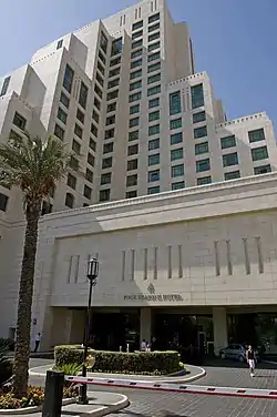 The hotel was financed by Saudi prince Al-Waleed bin Talal and was constructed by the local Fouad Takla Company. It opened on December 1, 2005.[4] Al-Waleed later sold his stake in the hotel to Syrian businessman Samer Foz. The Syrian government is the second largest stakeholder in the hotel.[5][6] Four Seasons Hotels severed its management contract with the property effective June 19, 2019, due to US sanctions on Foz. The US government accused Foz of war-profiteering and doing business with the Syrian President, Bashar al-Assad.[7] In 2021, the United Nations spent $11.5 million at the hotel. As of 2023, the hotel continues to operate using the Four Seasons name and logo, though it is no longer recognized as part of the chain.[7]