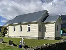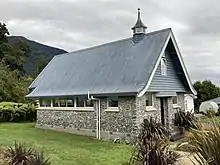 The Douglas Memorial Church was a small Presbyterian church at 5 Main Road, Fox Glacier, built by the Hokitika firm of Goodfellow and Bennett in 1952 from local stone and rimu. A reduction in the number of parishioners saw the church put up for sale in 2012, and it was subsequently converted into self-catering holiday accommodation, The Church at Fox, opening in 2015.[32][33]