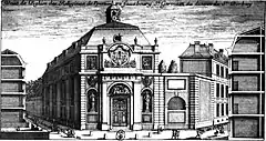 In 1671 d'Orbay became one of the founding members of the Académie Royale d'Architecture and that same year designed the portal of the Hôpital de la Trinité (destroyed), rue Saint-Denis, Paris.[5]
